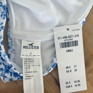 NWT Hollister underwire ribbed blue floral bathing suit top size small. Gold clasp in back and adjustable straps. White inner lining with no padding.