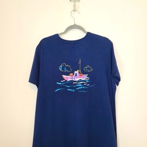 Michael Leu Art To Wear Sailboat Beachy 100% Cotton Maxi Dress