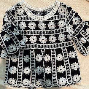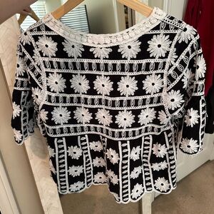 Chic black and white crochet top with floral design. Perfect for casual outings.