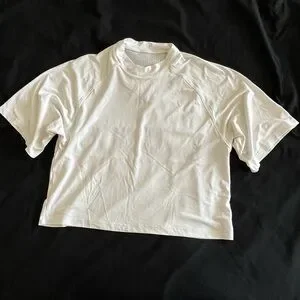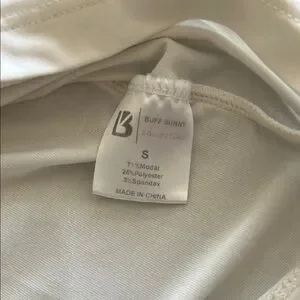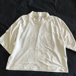 Comfortable and stylish Buffbunny ivory mock neck crop top, perfect for everyday wear. Back has a mesh panel and is super breathable.