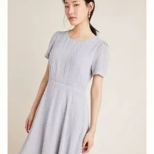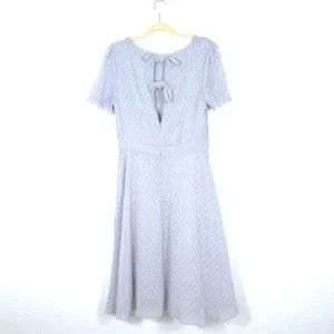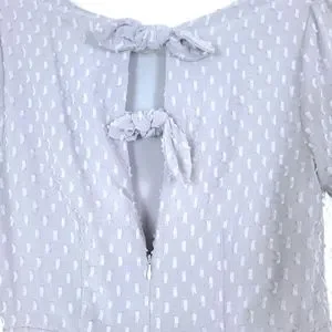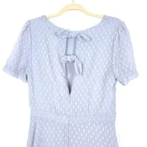 Anthropologie Sunday In Brooklyn Georgiana Textured Mini Dress. Bow-tie cut out design. Back zipper. Playful bow embellishments. Feminine cut. Half-lined.