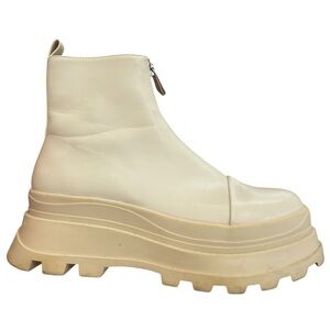 ZARA CREAM LUG SOLE ZIP UP BOOTIES in size 37. In good used condition, with signs of wear shown in pictures. Comes from a smoke-free, cat-friendly home. Measurements are included in pictures. Please inspect pictures closely, and let me know if you have any questions!
