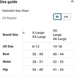 @breeariel22 the tag says 2X/3X but the only size chart I could find for FeelinGirl was the one I attached.