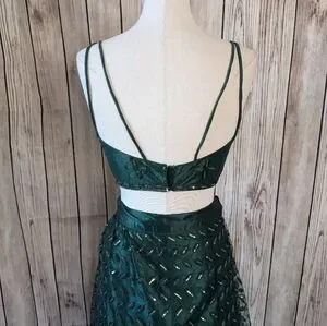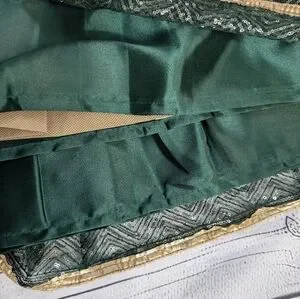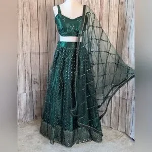 Emerald green embroidered Lehenga Choli with gold sequin work.