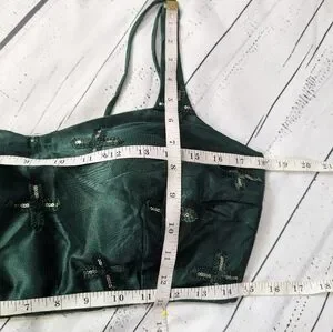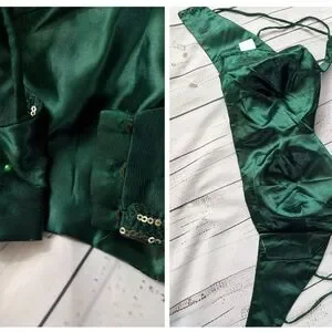 It's in excellent condition. It will fit a size Small. Check pics for your size requirements. Message me if you need size adjustment to a smaller blouse.