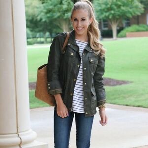 J Crew stylish burnt orange women's military jacket featuring gold button accents. Perfect for adding a pop of color to your wardrobe.