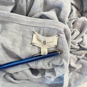 Keywords: Lou & Grey, women's t-shirt, long sleeve, gray, crew neck, casual wear, comfortable, machine washable, polyester, rayon, cotton, basic style, pre-owned, excellent condition, versatile.