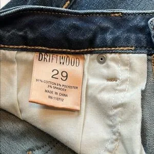 Driftwood women's Colette jeans. Cropped. New condition. Size 29. Beautiful embroidery on cuffs and back pocket. No flaws. No stains. Distressed perfectly!