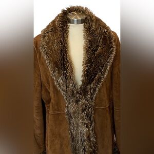Wilsons Leather Pelle Studio Brown Suede Leather Faux Fur Coat Women’s Size XL