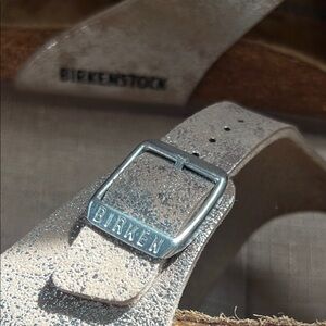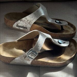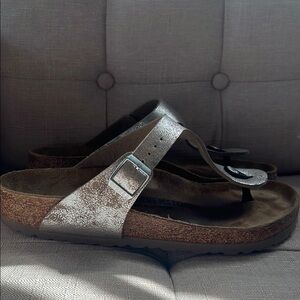 Silver Metallic Birkenstock T-Strap Sandals - Size 9