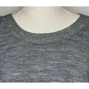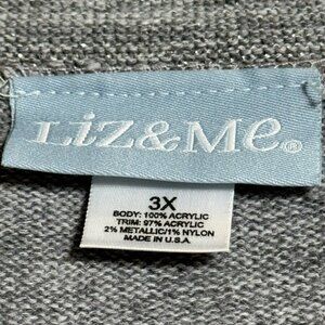 Liz & Me Womens 3X Gray Acrylic Silver Metallic Knit Sweater Top Short Sleeve