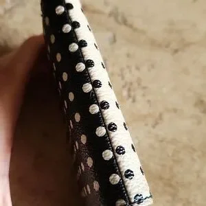 Chic Fossil wallet with black polka dots on a cream background and vice vera on other side! Features a zippered pocket for change.