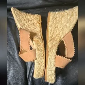 Step out in style with these tan Michael Kors wedge leather sandals. Perfect for any casual outing, these shoes offer both comfort and elegance. These have a rope decorated wedge and soft rubber sole with a soft leather insole. These are gently tested with a little wear on the logo area of the heel. I purchased these here on Poshmark and never wore them. There is some glue showing from manufacturing that is shown in the photos. The front wedge is 1" and the back heel wedge is a little under 4". Super cute shoes! Please ask questions and make an offer. I can't say yes if you don't ask!