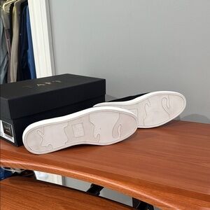 Step out in style with these sleek black suede loafers. Perfect for any occasion, they offer both comfort and elegance. Only worn once to a wedding soles are rubber
