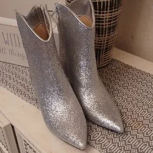 Western Wear Chic is the New Trend! Step out in style with these dazzling silver glitter cowboy boots. Perfect for adding a touch of sparkle to any outfit. Kitten heel. New without box.