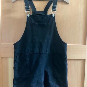 Stylish black cotton overalls with adjustable straps and front pocket. Perfect for casual wear. Missing drawstring at the waist