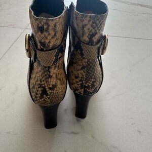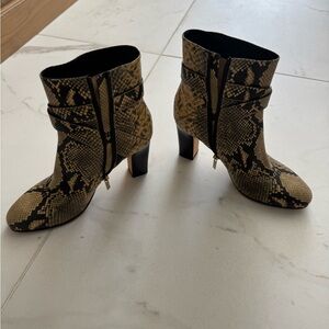 Step out in style with these chic snake print ankle boots. Perfect for adding a bold touch to any outfit. Barely worn maybe 1 time. Perfect condition