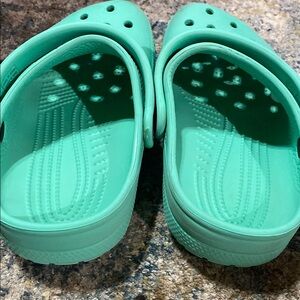 Comfortable and fun, these Crocs Kids Classic Clogs in green are perfect for everyday adventures. Lightweight and easy to wear, they offer great support for little feet.