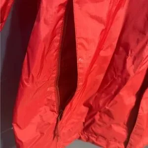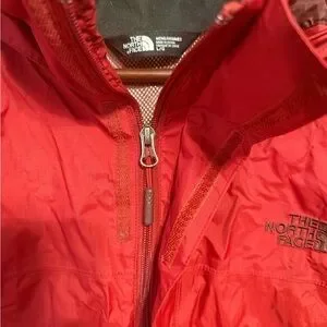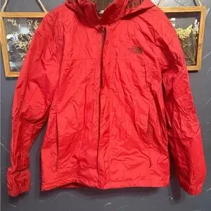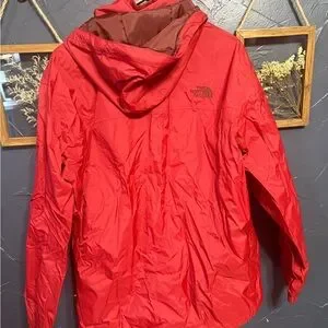 Red (dark shade) Northface rain shell. Great condition with tons of life left. Couple of small marks on the sleeve but not super noticeable.