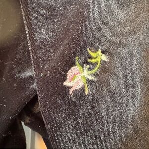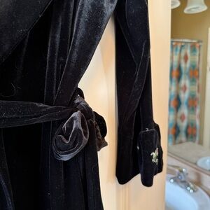 Elegant black velvet robe featuring delicate floral embroidery. Perfect for a touch of luxury.