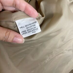 Stylish tan trench coat with a belt. The belts is removable as it is attached with buttons in the back. Super chic coat, it flares out at the bottom like a dress!