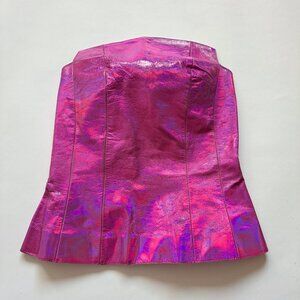 Plein Sud neon hot pink metallic genuine leather corset top Size 38 / XS