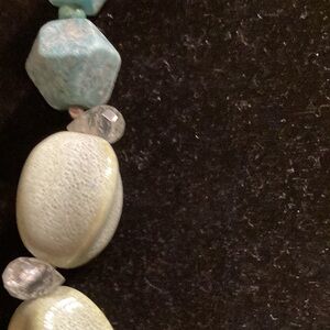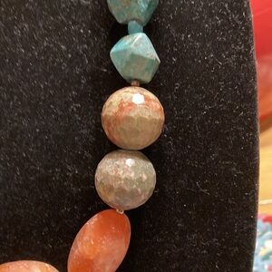 multicolor stone necklace featuring vibrant orange, turquoise, and clear beads. Some if the elements aren’t stone. Perfect for adding a pop of color to any outfit.chain is 925 sterling silver. Like new. Bundle and save. Ty