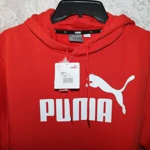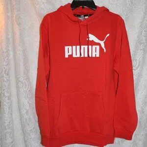 The Puma Men's Hoodie in size Large is a stylish and comfortable activewear piece perfect for the winter, fall, and spring seasons. Made from a cozy cotton blend knit material, this red hoodie features a solid pattern with a drawstring closure and a hooded design. The PUMA logo accents the front of the hoodie, making it a great choice for casual wear and sports-themed outfits. Easy to care for with its machine washable fabric, this pullover hoodie offers a regular fit and long sleeves for added warmth and style.