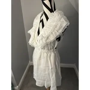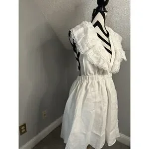 Anthropologie We Are Sundays NWT Aurora Linen Mini Dress White Ruffle Backless