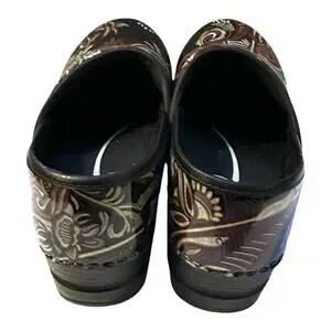 Sanita Chaya Arabesque Patent Leather Professional Clogs are comfortable and stylish. The clogs are designed with a low top shoe shaft style and slip-on closure for ease of wear. The round toe shape and low block heel height make them perfect for casual and workwear occasions. The multicolor Arabesque pattern adds a touch of style to the clogs. The outsole material is made of rubber while the upper material is made of patent leather. The clogs are available in EU size 38 and US size 7.5. Fall season is the best time to wear these clogs.
