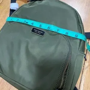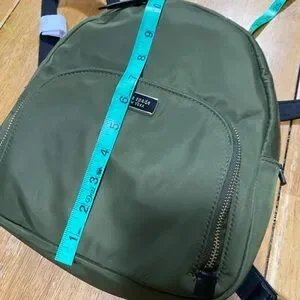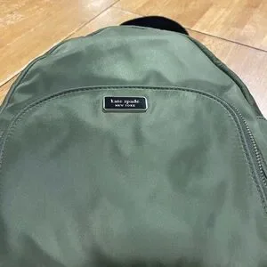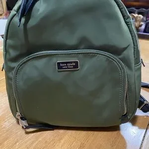 Stylish green backpack by Kate Spade. Features a front zip pocket.