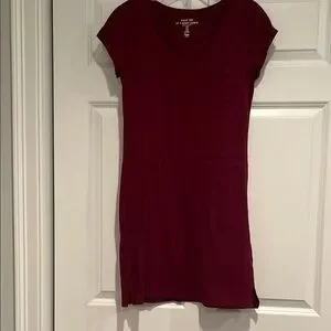 Burgundy V-Neck T-Shirt Dress