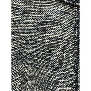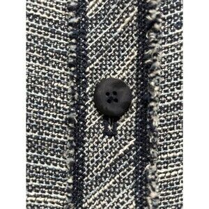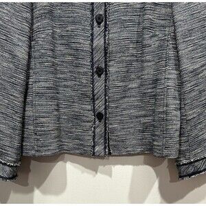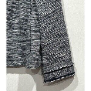 Beautiful J. Jill boucle tweed jacket in midnight blue. Crew neck, button down front, and raw edge detailing on collar, cuffs and button placket. Lightweight cotton blend fabric. Size Large