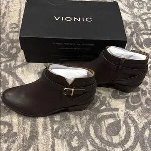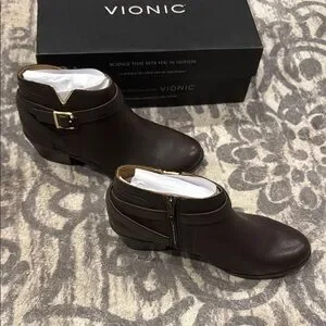 Step out in style with Vionic's chic brown ankle boots. Perfect for any occasion, these boots offer both comfort and elegance.