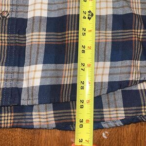 Ariat Retro Fit Flannel Shirt Mens XL Blue Tan Plaid Western Pearl Snap Cotton