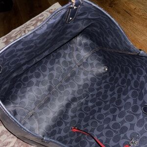 Stylish and versatile, this Coach tote bag features a sleek blue design with striking red accents. Perfect for everyday use, it combines elegance with functionality.