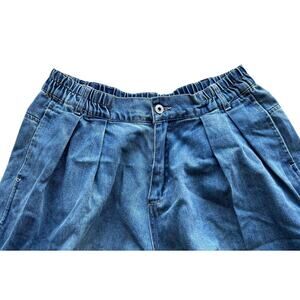Garage Barrel Balloon Denim Blue Jeans Light distressing pleated hem Size 14