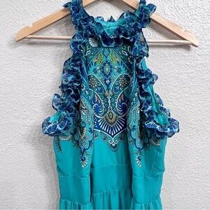 Boston Proper Paisley Print Ruffle High Neck Maxi Dress size 10
