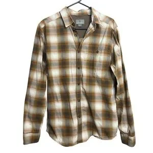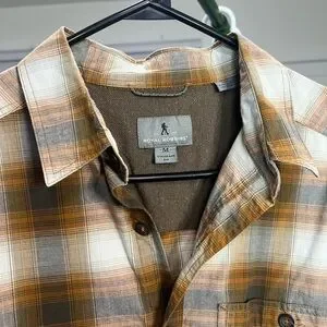 ROYAL ROBBINS Orange Checkered Button Down Shirt Cotton Long Sleeve size Medium