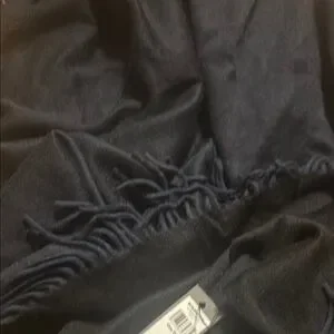 John Varvatos Elegant Black Fringe Scarf or throw blanket REVERSIBLE BLUE/BLACK