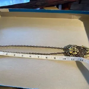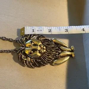 Keywords: gold necklace, lion pendant, vintage jewelry, unisex necklace, articulated pendant, statement piece, gold-toned, 20-inch necklace, original design, bold accessory.