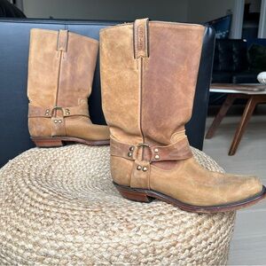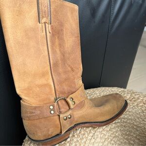Stylish Boulet boots in tan leather. Features a classic design with buckle details. Perfect for any occasion.