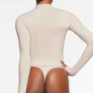 Skims Cotton Jersey Turtleneck Top. In the color Heather Oatmeal. Long Sleeves. Cotton elastane blend.
