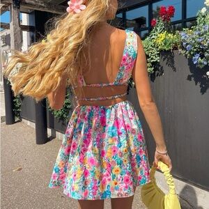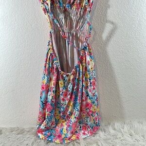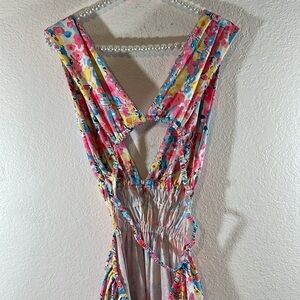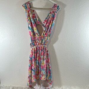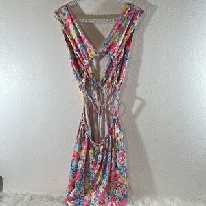 Floral V-Neck Colorful Sexy Open Back Mini Dress Size Large