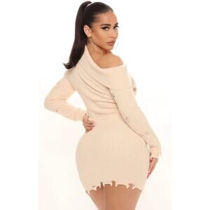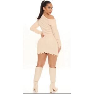 Fashion Nova Sweater Dress Plus Sz 2X One Shoulder Sexy Grunge Distressed Club
