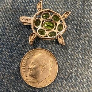 Elegant turtle pedant with sparkling green gemstones. Perfect accessory for any outfit.