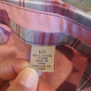 TOMMY BAHAMA Shirt Large Button Up Pink Plaid Long Sleeve Spring Easter Western