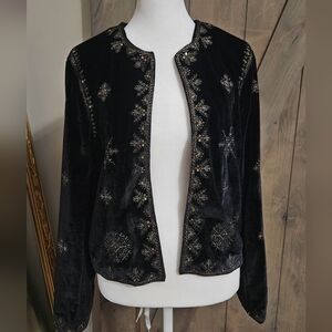 Velvet open front blazer with metallic embroidery