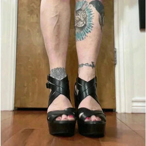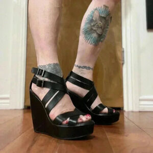 Kork-Ease Hailey Strappy Platform Wedge Sandals Shoes Black Leather 9 40.5