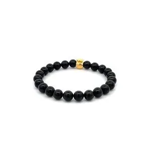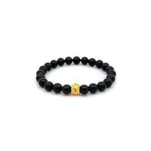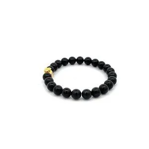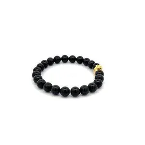 18K Gold Charm Bracelet Natural Black Tourmaline Gemstones 6mm Money Bag